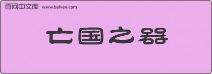 1、然魏法亡国之器,而于义竟无取焉。见《晋书·五行志上》。 2、重庆市云阳县凤鸣中学的百里听刚来中国的留学生Amaris说,使用成语“亡国之器”造句是件异常无