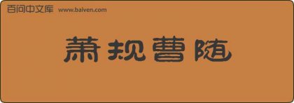 1、成语萧规曹随源自《史记·曹相国世家》:“参代何为汉相国,举事无所变更,一遵萧何约束。”汉·扬雄《解嘲》:“夫萧规曹随,留侯画策,陈平出奇,功若泰山