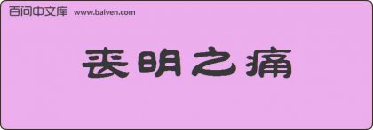 1、清·吴趼人《二十年目睹之怪现状》第87回:“谁知同寅当中,一人传十,十人传百,已经有许多人知道他遭了丧明之痛。”。 2、成语丧明之痛源于《礼记·檀弓上