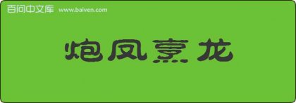 1、成语炮凤烹龙源于唐·李贺《将进酒》诗:“烹龙炮凤玉脂泣,罗屏绣幕围香风。” 2、上海五爱高级中学的钟霖听留学生阿奇柏德说:用词语“炮凤烹龙”造句是极