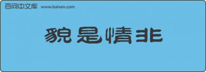 1、成语貌是心非出自表面做的与心里想的完全两样。比喻表里不一。同“貌是情非”。 2、前往水城县二中的时候,骞北叔叔给子煊和碌语讲了“貌是情非”的历史故事